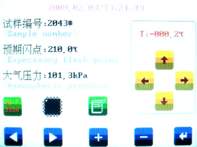 This instrument is used to determine the petroleum products open flash point value. , Operator interface, color LCD touch keyboard, wizard-driven menus adjustable heating rate, in print in English, (optional) 232 computer management interface, the Model instrument as the company exports instrument.